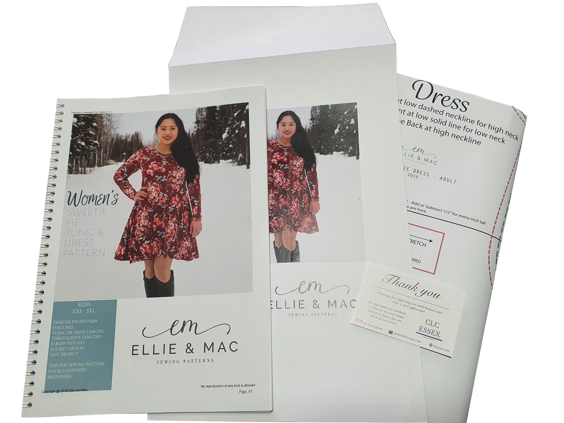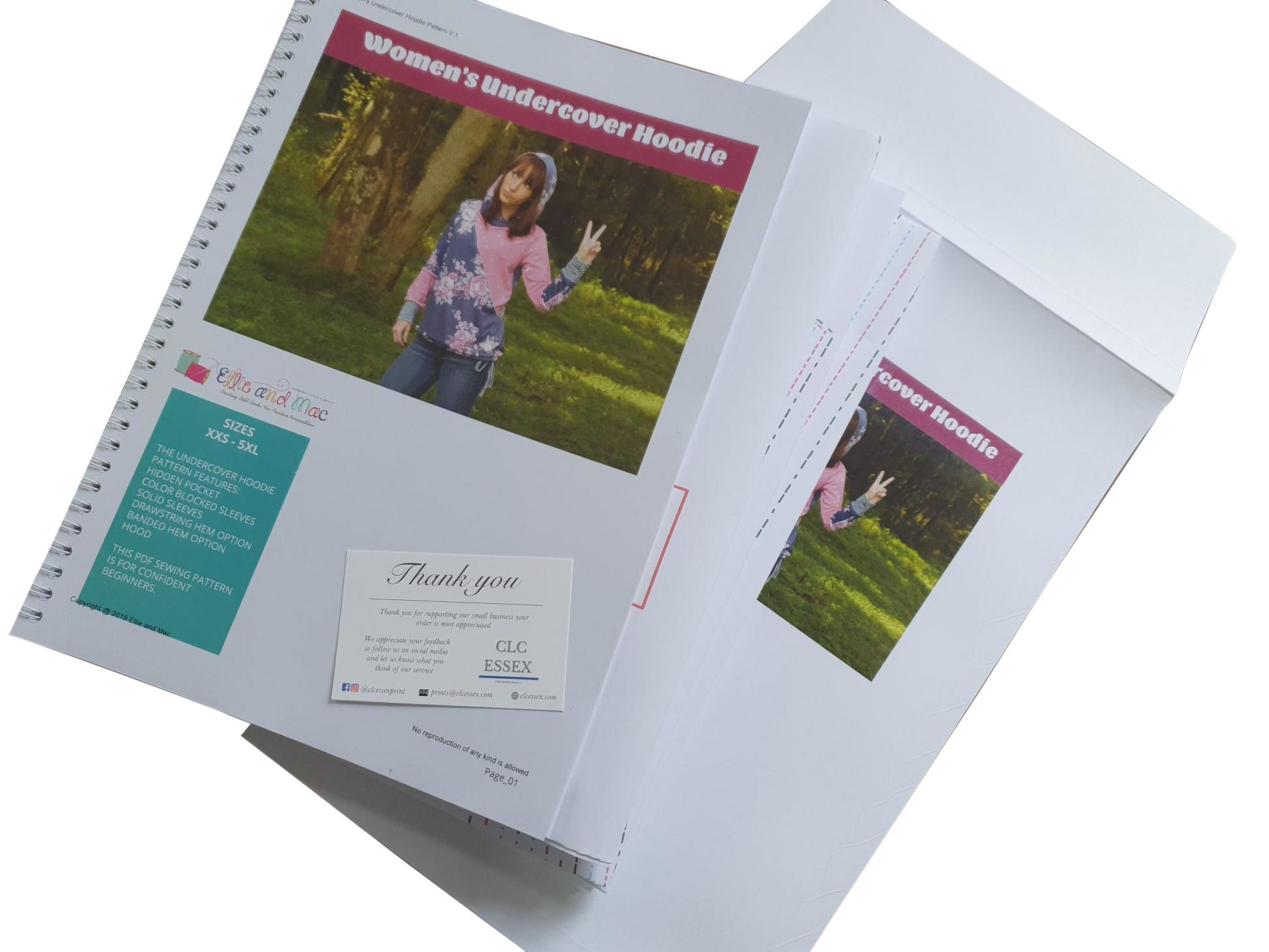 - Premium Instructions - Metal coil bound, protective front cover, hardboard backing along with our own additional sewing pages.