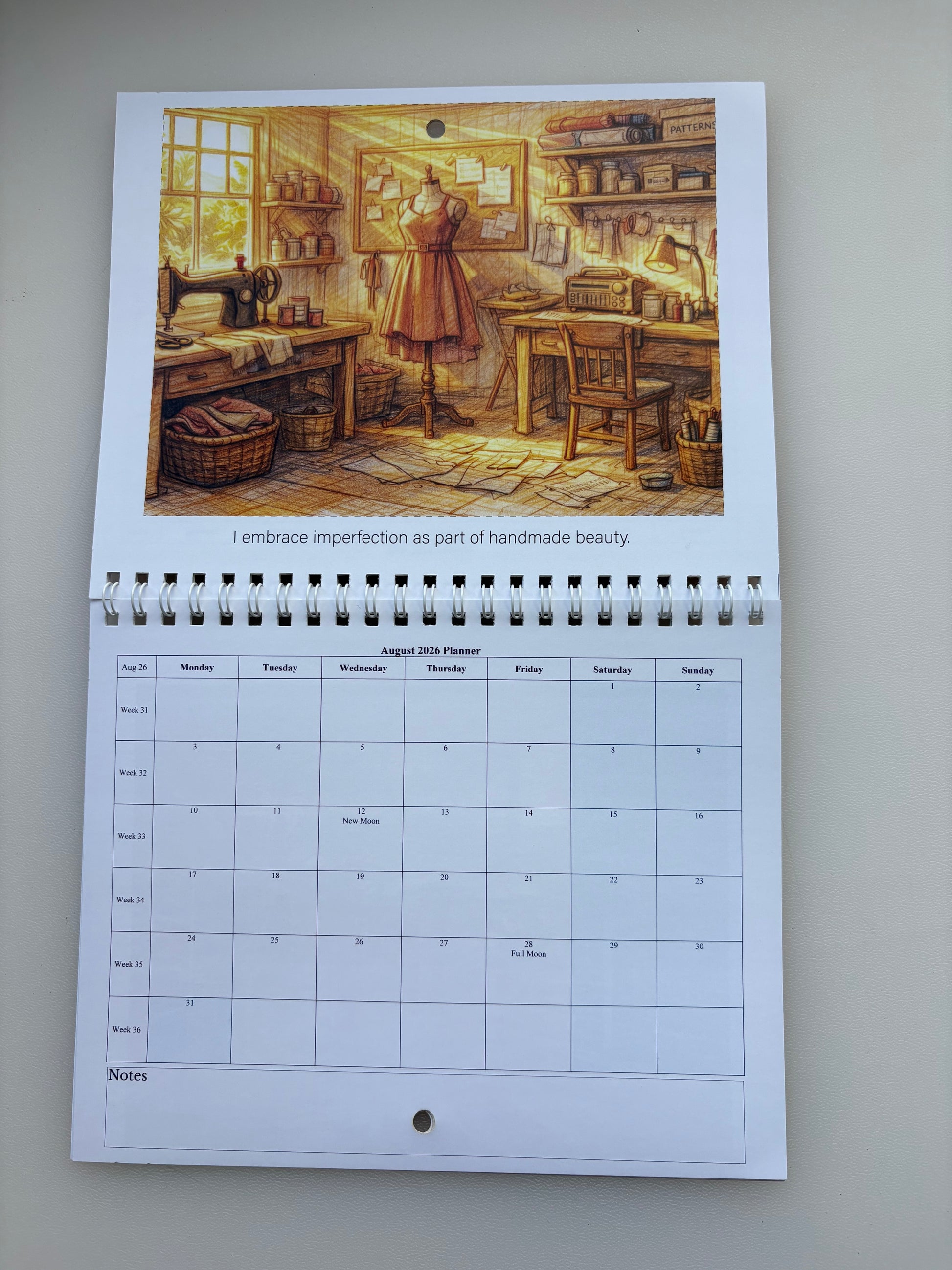 Celebrate your creative journey with this elegantly designed 2026 calendar, thoughtfully curated for any sewist.