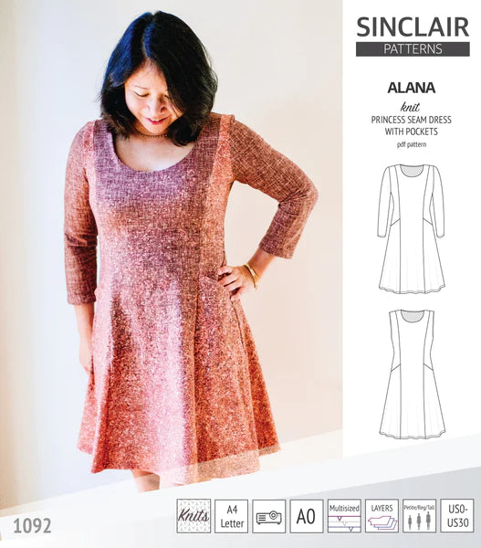 Featuring: Fitted at the shoulders and bust, semi-fitted at the waist and lightly flared at the hips dress designed for knit fabrics. Back and Front princess seams go from the shoulder to the bottom hem. The dress can have optional pockets at the side panels. Offered with long, 3/4 or short sleeves but also can be made as a sleeveless dress with the armholes finished with binding. Regular or scoop neckline is finished with a facing. Elegant and easy to make dress that works well in different fabrics suitable for different times of the year.