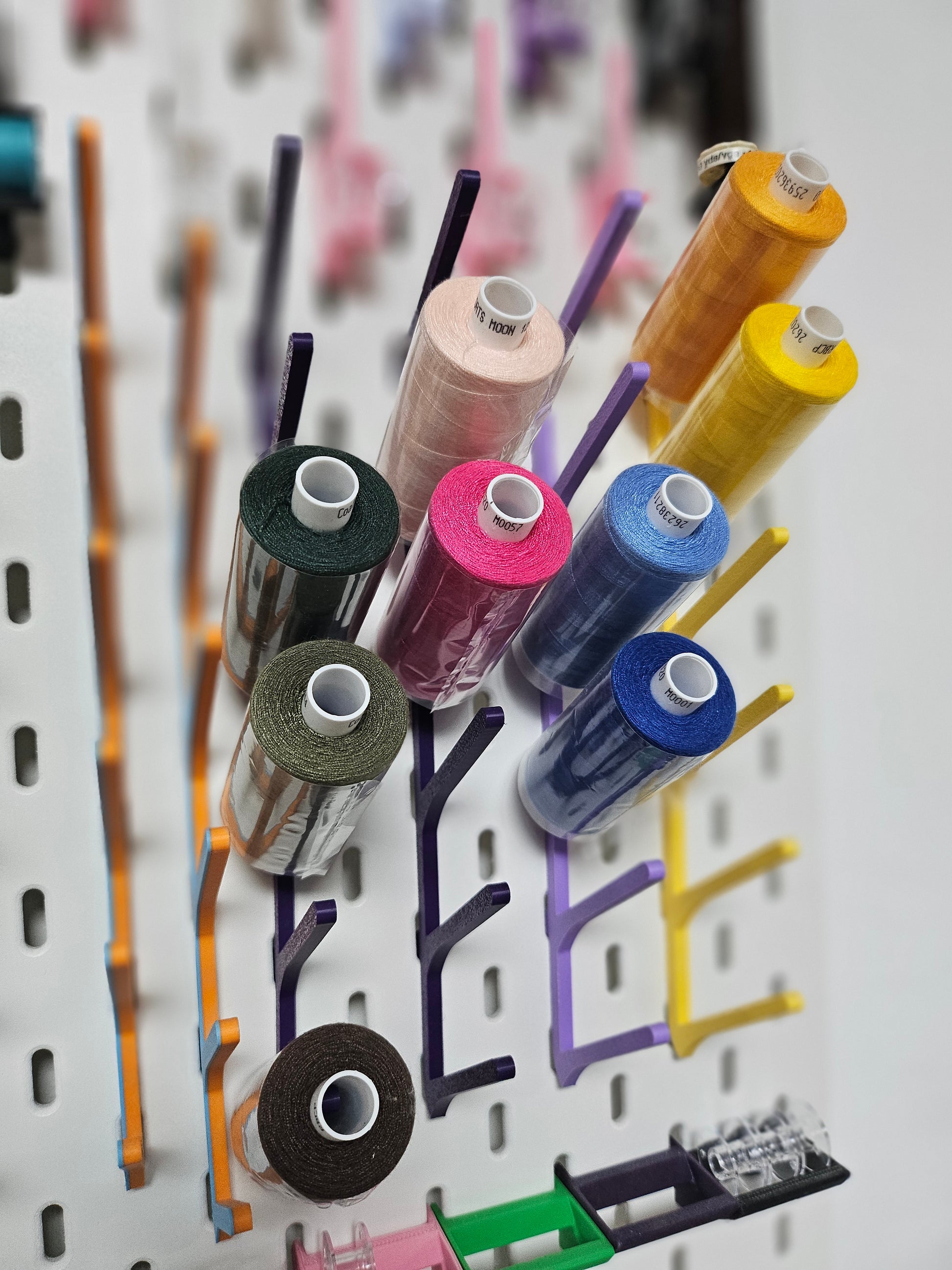 Made with 3D printing technology, it easily attaches to Ikea Skadis peg boards, keeping your thread within reach. Get inspired to create beautiful projects with this convenient and stylish storage solution!