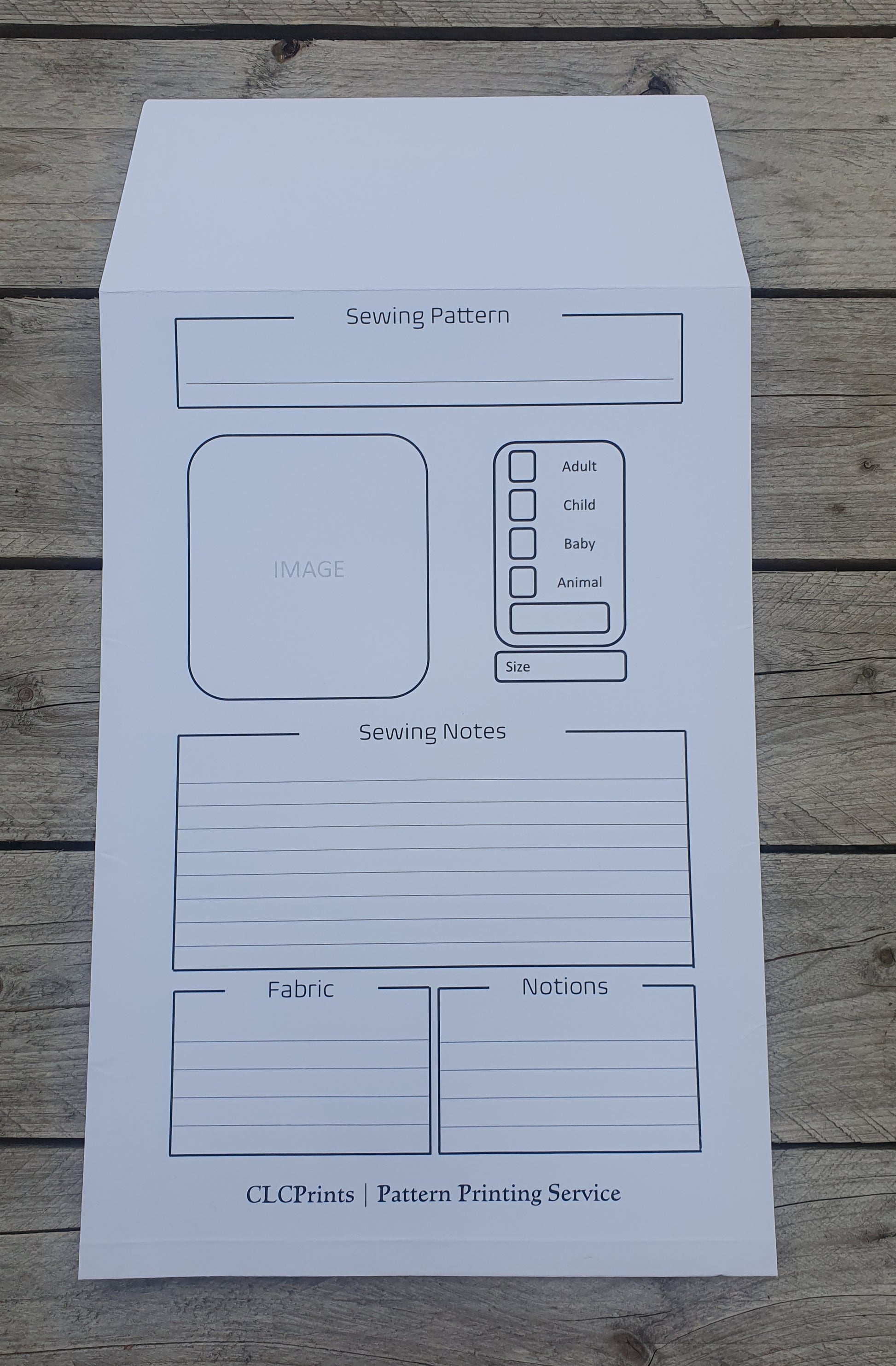 These super envelopes have space for all your pattern info, any adjustments you have made or handy tips you want to note.